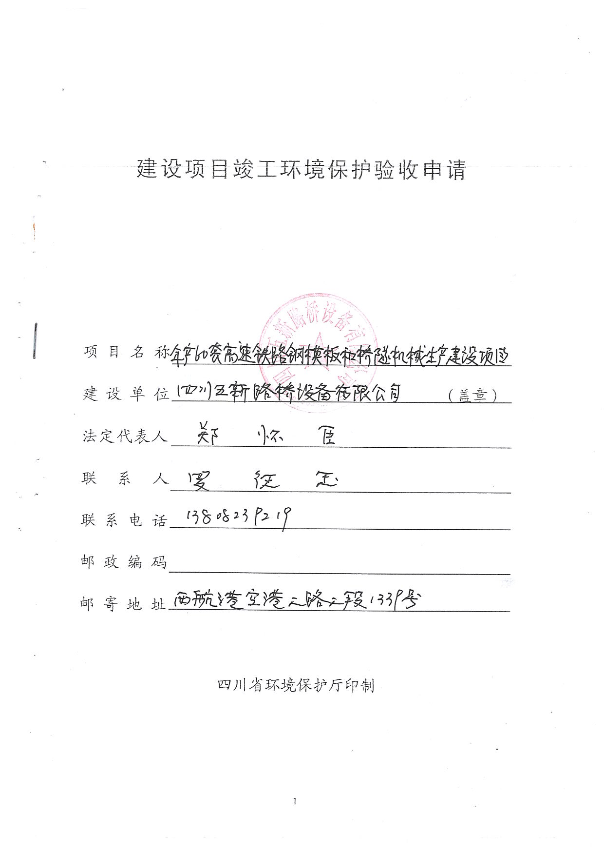 建設(shè)項(xiàng)目竣工環(huán)境保護(hù)驗(yàn)收申請