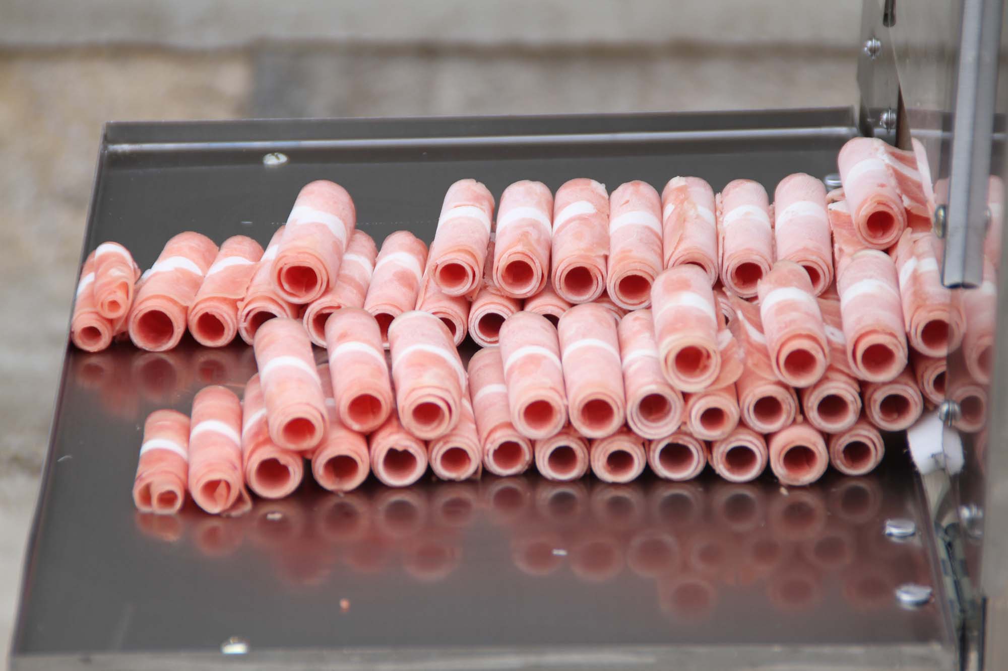 鴻祥瑞數(shù)控切片機HXR-S2型一次可以切2卷(板)羊肉或肥牛,鴻祥瑞數(shù)控切片機采用西門子PLC控制,步進電機傳動,徹底解決了機械切片機故障率高的難題,真正意義上實現(xiàn)了全自動化。紅外線感應(yīng)安全防護裝置(選裝),公司通過市場調(diào)研,特研發(fā)一次性刀具,解決部分客戶磨刀難的問題。雙導向推進器,自動進退,起刀高度18CM,可以立著切肥牛板,調(diào)整厚薄不用停機,可根據(jù)所需要的厚度在數(shù)控開關(guān)自動加減,每小時可切肉50-100公斤,工作臺采用食品專用有機塑料板制成,保證食品安全、衛(wèi)生,肉卷無需解凍,可直接上機操作,并可切出多種卷形(粗卷、細卷、長卷),成形整齊、美觀,并成排列狀,容易包裝,加工效率高、安全、節(jié)省人工。是大型火鍋店、大中型牛羊肉批發(fā)商的理想選擇