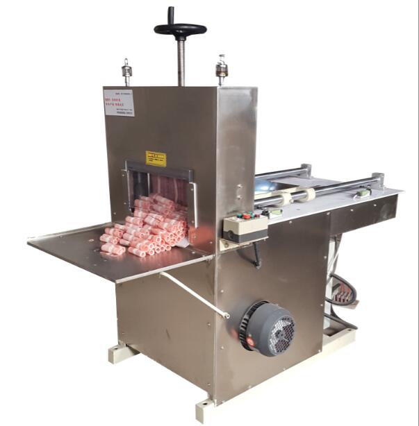 鴻祥瑞數(shù)控切片機HXR-S3型一次可以切3卷(板)羊肉或肥牛,鴻祥瑞數(shù)控切片機采用西門子PLC控制,步進電機傳動,徹底解決了機械切片機故障率高的難題,真正意義上實現(xiàn)了全自動化。紅外線感應(yīng)安全防護裝置(選裝),公司通過市場調(diào)研,特研發(fā)一次性刀具,解決部分客戶磨刀難的問題。雙導(dǎo)向推進器,自動進退,起刀高度18CM,可以立著切肥牛板,調(diào)整厚薄不用停機,可根據(jù)所需要的厚度在數(shù)控開關(guān)自動加減,每小時可切肉100-150公斤,工作臺采用食品專用有機塑料板制成,保證食品安全、衛(wèi)生,肉卷無需解凍,可直接上機操作,并可切出多種卷形(粗卷、細(xì)卷、長卷),成形整齊、美觀,并成排列狀,容易包裝,加工效率高、安全、節(jié)省人工。是大型火鍋店、大中型牛羊肉批發(fā)商的理想選擇。